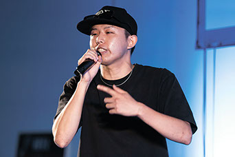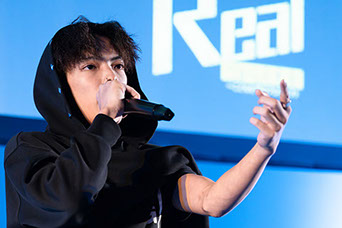 決勝大会の1番手として登場。半年ほど前にラップを始めたばかりだが、緊張感みなぎる会場の雰囲気にのまれることなく、ステージ上を所狭しと動き回るパフォーマンスで観客の心をつかんだ。「音楽で地域を盛り上げたい」という思いを<地元上げる為に課すミッションで もらう県民賞><明日もみんなが笑えてるように 来たんだ俺がREALを吐きに>と歌った。「決勝でみんなのパフォーマンスを見て、もっと成長したいと思った。少しずつ前に進んでいきたい」